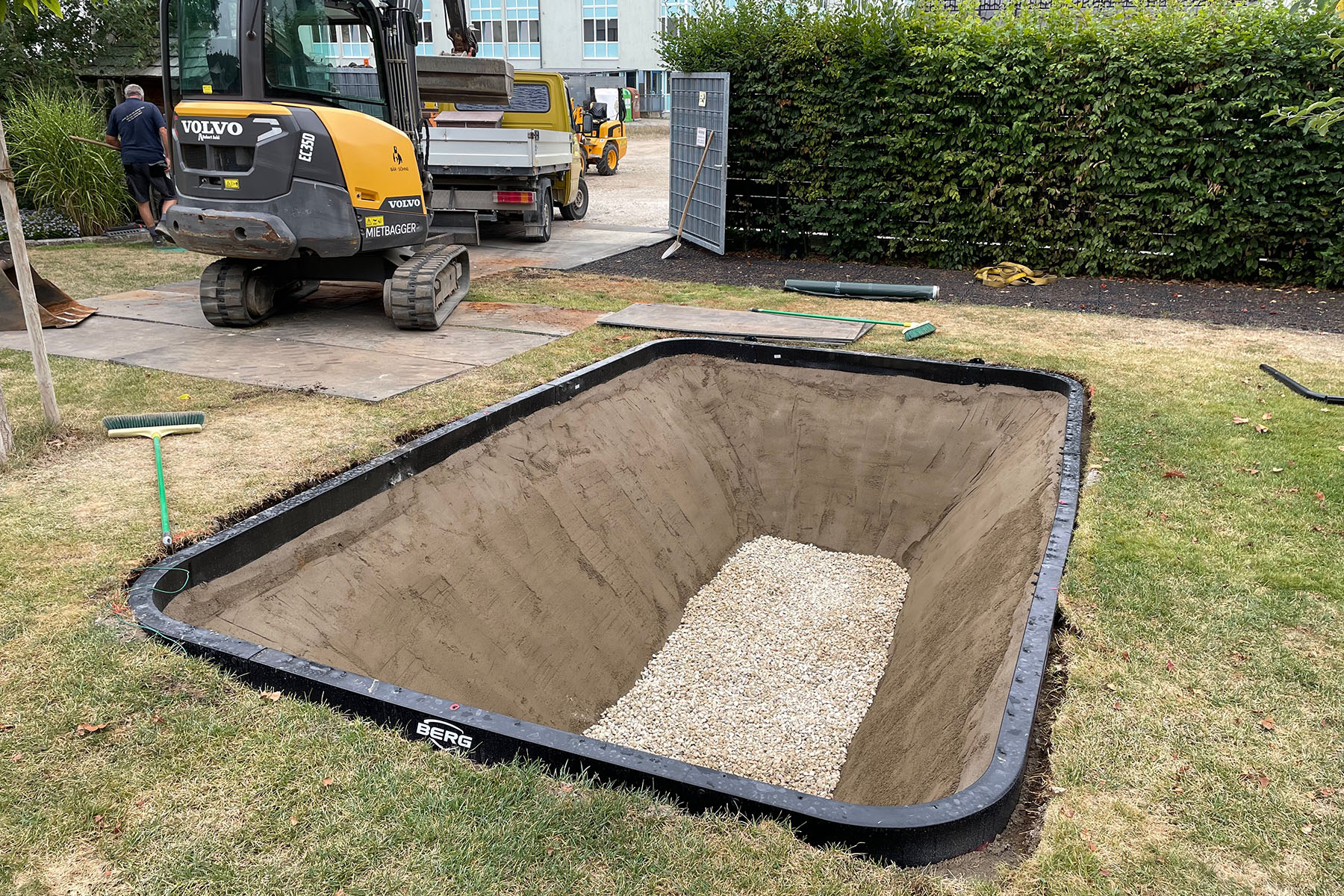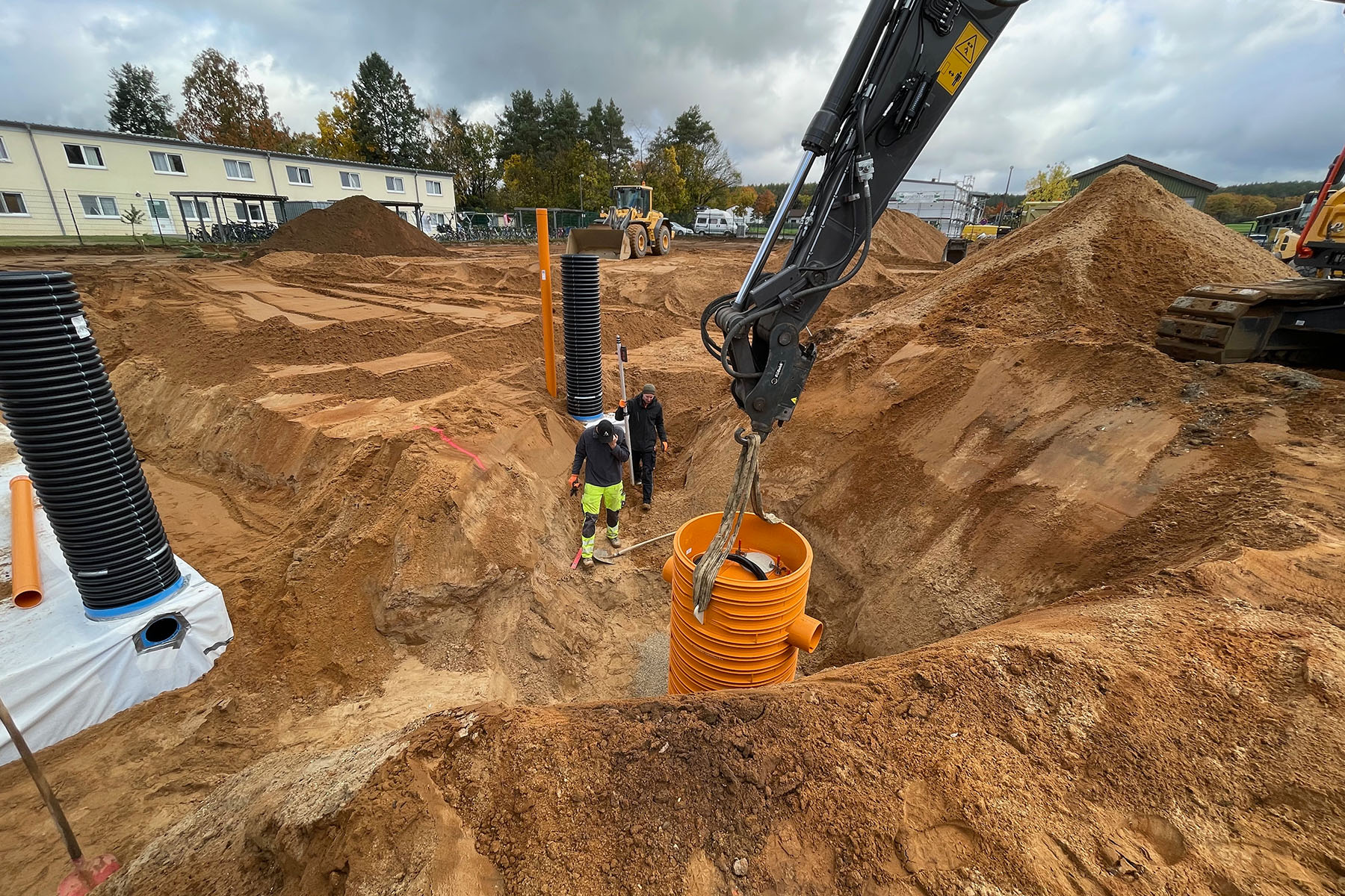 Wasser kontrolliert ableiten und Schäden zuverlässig verhindern – dafür steht BÄR+SÖHNE. Wir planen und realisieren Kanalsysteme, legen Drainagen an, sanieren Kellerwände, erstellen Hausanschlüsse sowie Wassertanks und Zisternen und bauen Pumpenschächte. Auch Kanalreparaturen führen wir präzise und nachhaltig aus. Mit fachlicher Sorgfalt, modernem Equipment und Erfahrung sorgen wir dafür, dass Ihr Grundstück trocken, sicher und langfristig stabil bleibt – verlässlich, effizient und wartungsarm.